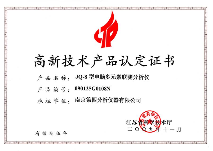 JQ-8型高新技術(shù)產(chǎn)品認(rèn)定證...