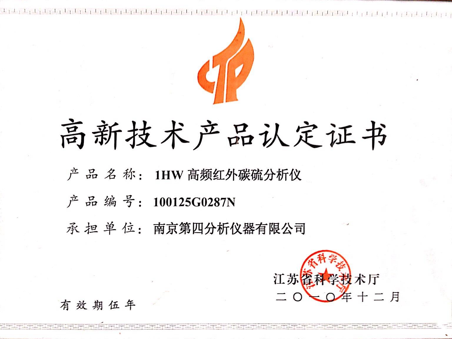1HW高新技術(shù)產(chǎn)品認(rèn)定證書